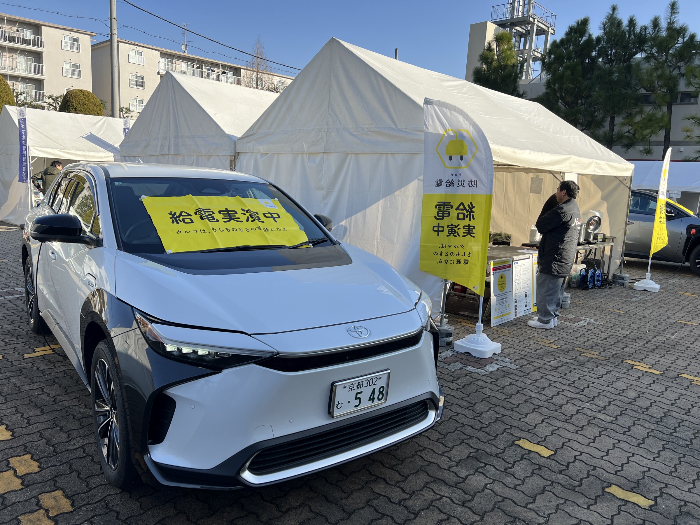 私たち京都府オールトヨタのブースでは、電気自動車bZ4Xをからの給電で豚汁の炊き出しを行い、参加されたお客様へご提供させていただきました。