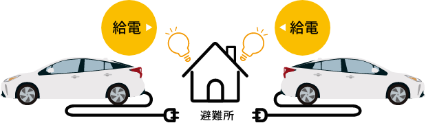 災害発生時に、京都府の要請に応じて避難所等への外部給電車両の派遣・貸与を行います。